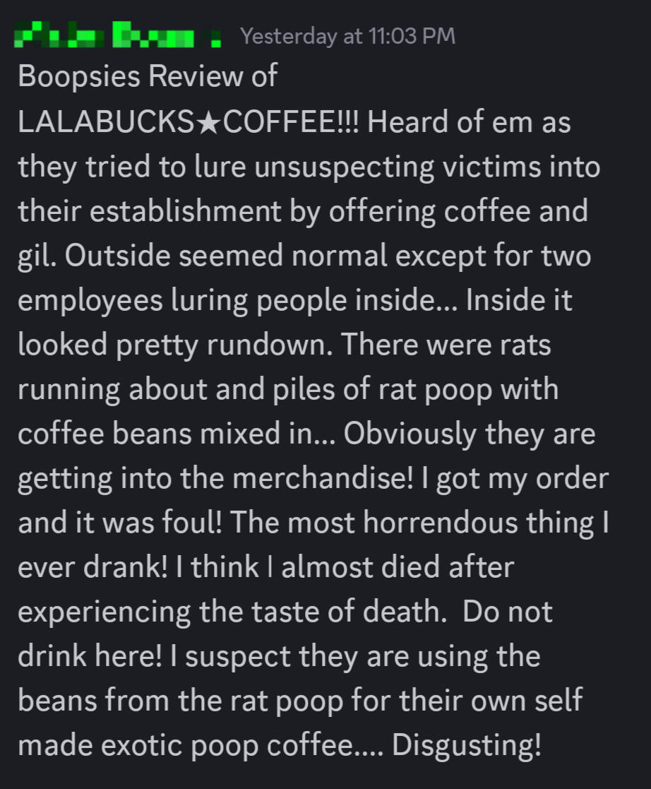 Here at LALABUCKS, we love our hardworking noble good perfect police officer cops and the law and complying with the law. No one has ever died on our premises.Fill this text box with more marketing copy, thanks.